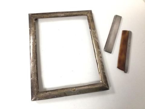 A Birmingham silver photograph frame (internal: 17cm x 13cm) and a Birmingham silver comb with case (2)