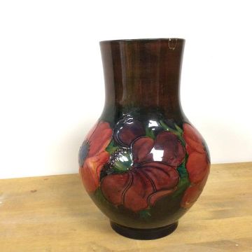 A Moorcroft baluster vase with Poppy decoration, with William Moorcroft signatures to base and Potter to HM The Queen, repair to rim (22cm)