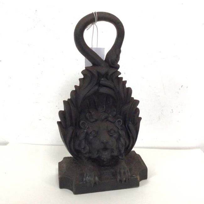 A cast iron doorstop with lion mask on base (30cm)
