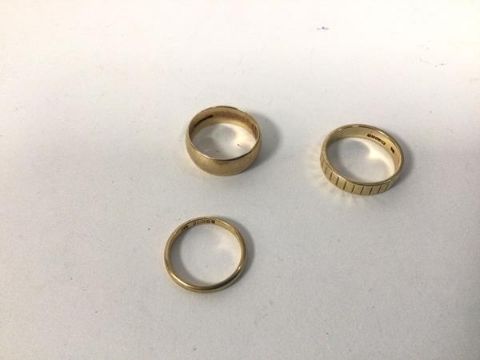 Three 9ct gold wedding bands (largest: M) (combined: 7.14g)