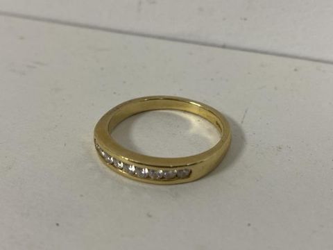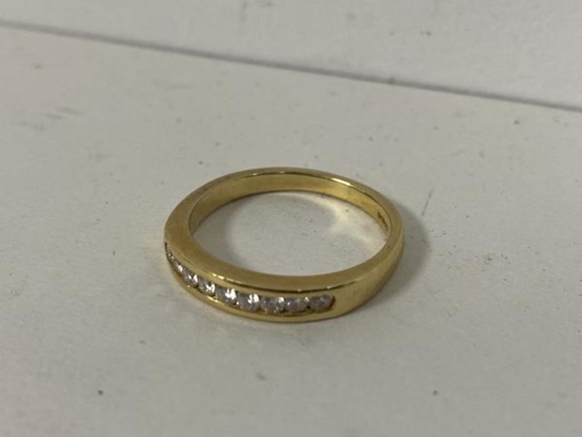 An 18ct gold ring channel set with nine diamonds size Q weighs 4.06grammes