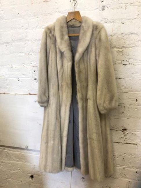A mink fur coat, measures 37cm across the shoulders x 116cm, along with a hat and two cuffs