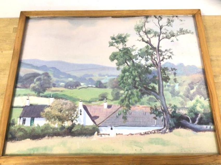 W Miles Johnstone, rural landscape with cottages, watercolour, signed bottom right, measures 40.5cm x 51.5cm