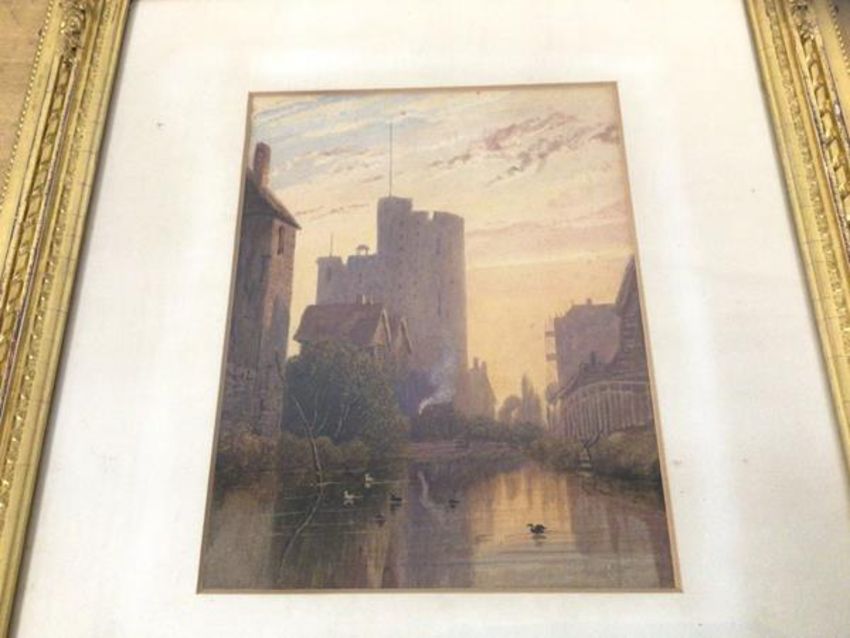 English School, Castle in Urban Setting, watercolour, measures 24cm x 19cm