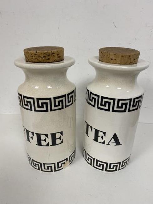 Portmeirion tea and coffee cannister with Greek Key decoration stamped Portmeirion Pottery Stoke on Trent each measures 19cm high