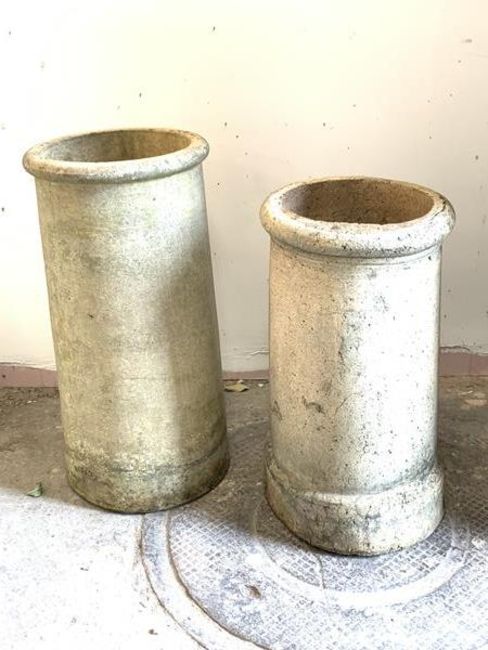 A late 19th century terracotta chimney pot (H63cm) together with another similar H58cm