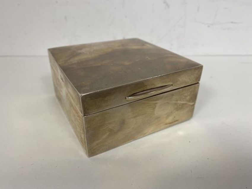 A 1956 Birmingham silver cigarette box, measures 4cm x 9cm x 9cm