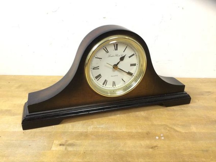 A London Clock Company modern tambour style mantel clock, measures 17cm x 34cm x 6cm