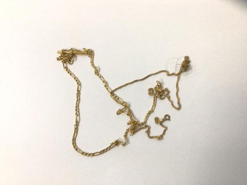 Two chains, one marked 9k, the other .375, longer measures 23cm, combined weight 4.23 grammes
