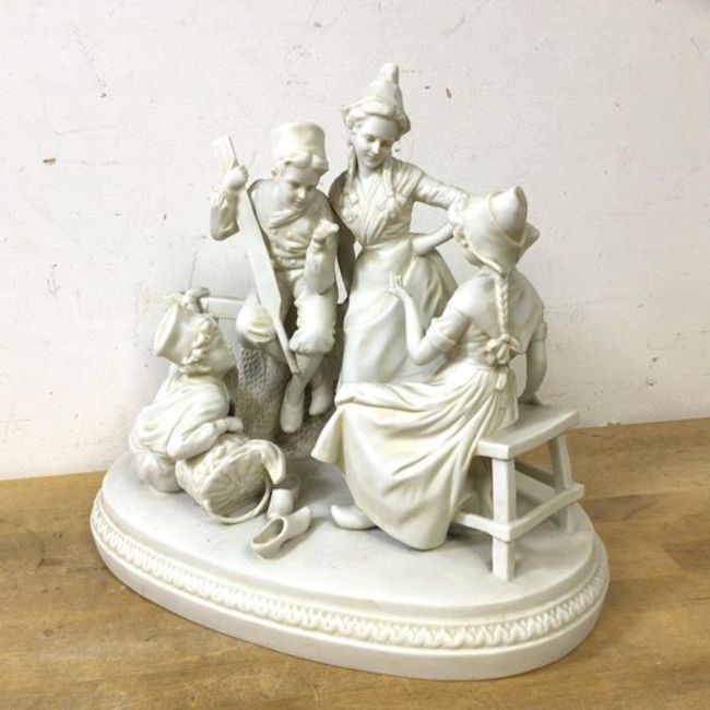 A bisque china figural group of Dutch children in conversation, measures 20cm high