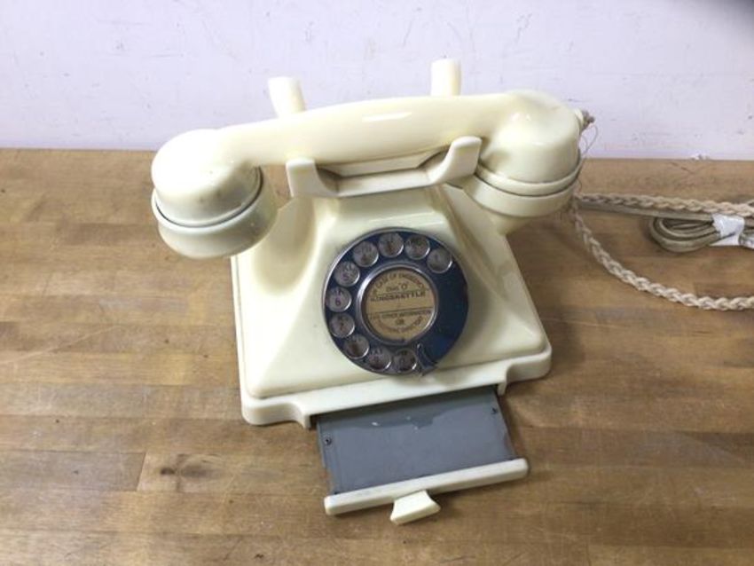 A vintage Kingskettle, Fife bakelite rotary dial telephone, measures 15cm high