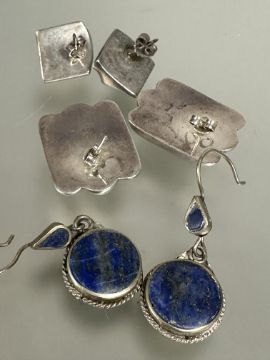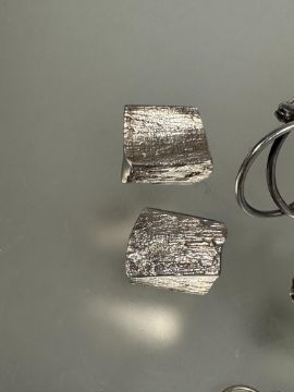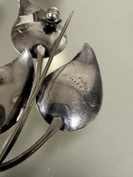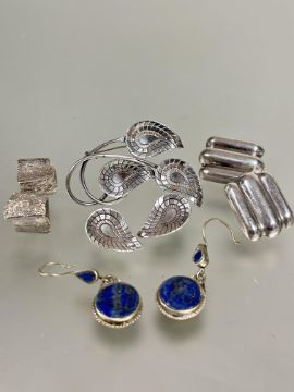 , and pair of Aarre Kroogh Denmark sterling silver boteh shaped clip on earrings, (L x 2.5 cm) and a matching open work brooch set three matching boteh, all stamped verso, no signs of damage or repairs, ( L x 5.5 cm). 37.6g