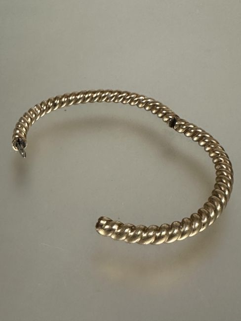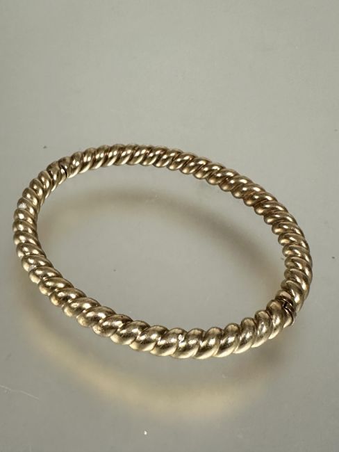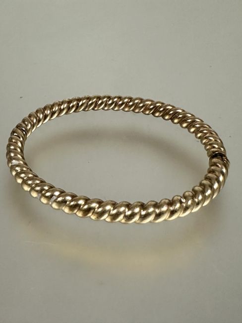 A 9ct gold spiral rope pattern hinged bangle with invisible clip fastening no signs of hard solder damage or repairs D x 6.5cm 14.58g
