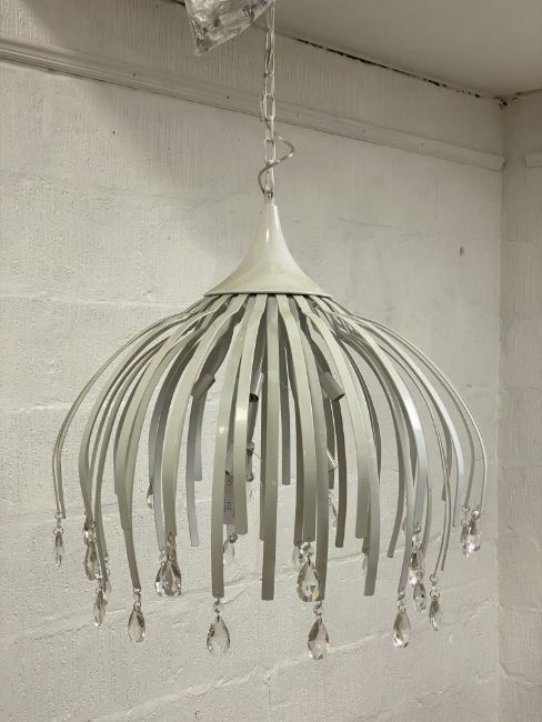 A contemporary seven branch pendent light fitting, with LED bulb holders and complete with chain and rose. H75cm.