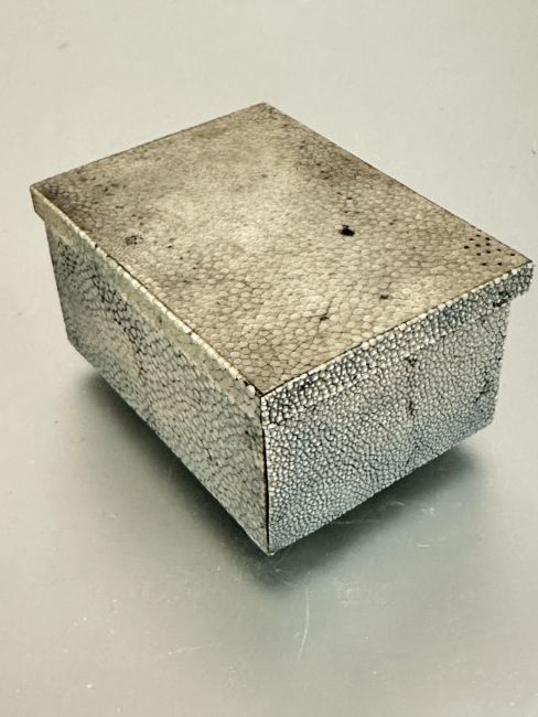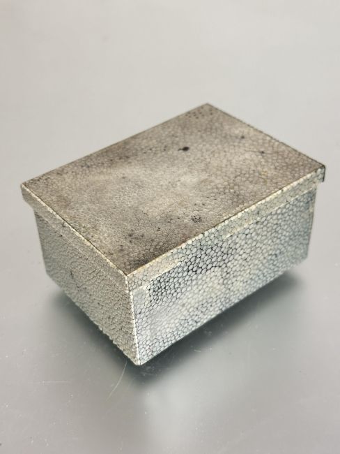 Property of the late Countess Haig, a 1920s shagreen pine box and leather base no signs of damage or losses H x 5cm L x 9.9cm W x 7cm