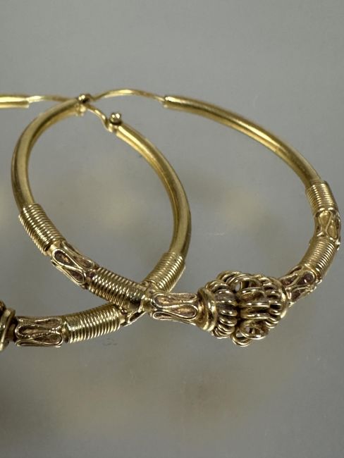 A pair of Eastern high carat gold hoop earrings with fine wire work decoration no signs of repairs solder or damage D x4cm 10.26g