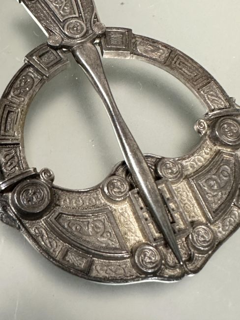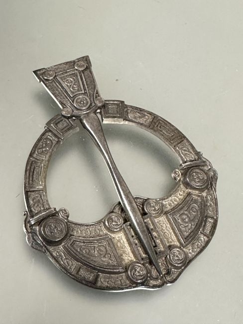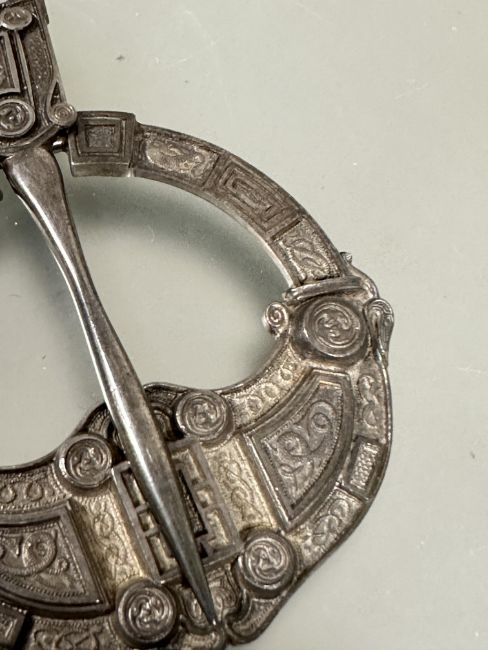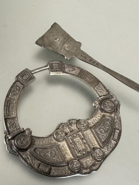 A 1920s  Hamilton and Inches Edinburgh large silver penannular celtic brooch with stylized serpents, knots etc pin not attached D x 7cm Edinburgh 1925  51.3g