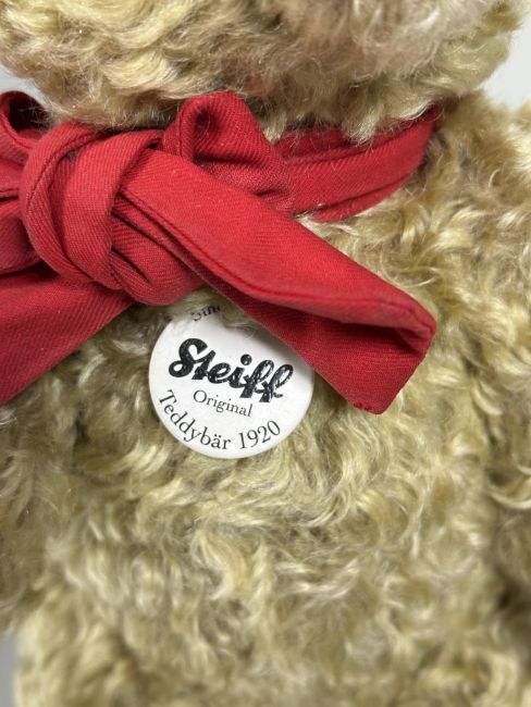 Property of the late Countess Haig, a modern German Steiff golden mohair 1920s bear with stitched nose and mouth inset glass eyes and felted paws with original button in ear, label  and working growl H x 33cm