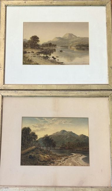 After Waller Hugh Paton (Scottish 1828-1895), pair of 19thc landscape coloured prints, both in a gilt frame. (25cmx35cm 25cmx36cm) (2)