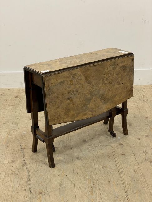 An early 20th century figured walnut and mahogany Sutherland table. H52cm.