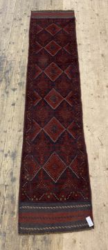 An Afghan Mashwani runner rug, the red field of repeating lozenge design. 268cm x 62cm.