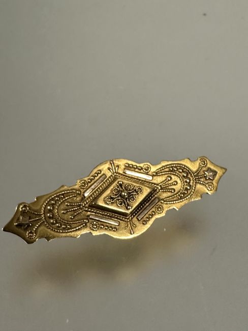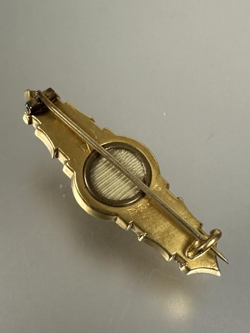 A Victorian 15ct gold bar brooch with beaded and rope pattern border and glazed panel verso no signs of hard solder or repairs verso L x 4cm 1.95g