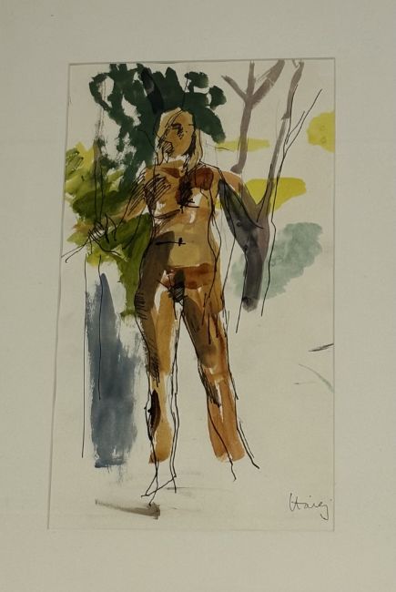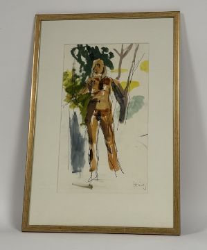 Property of the Late Countess Haig: Earl George Alexander Eugene Douglas Haig O.B.E., A.R.S.A., F.R.S.A. (British, 1918-2009), Nude in Forest, signed lower right, ink and watercolour, framed. 44cm by 25cm. Note: this lot may be subject to ARR.