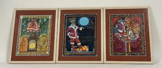 Property of the Late Countess Haig: Sir Robin Philipson R.A., P.R.S.A., F.R.S.A., R.S.W. (Scottish, 1916-1992), a group of eight Christmas cards, 1970's/80's, lithographs, framed (8). Largest 25cm by 20cm. Note: this lot may be subject to ARR.