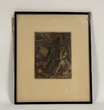 After Albrecht Durer (1471-1528), Melencolia I, engraving on laid paper, trimmed, framed. 23.5cm by 18.5cm. Provenance: Christie's Scotland client label verso.