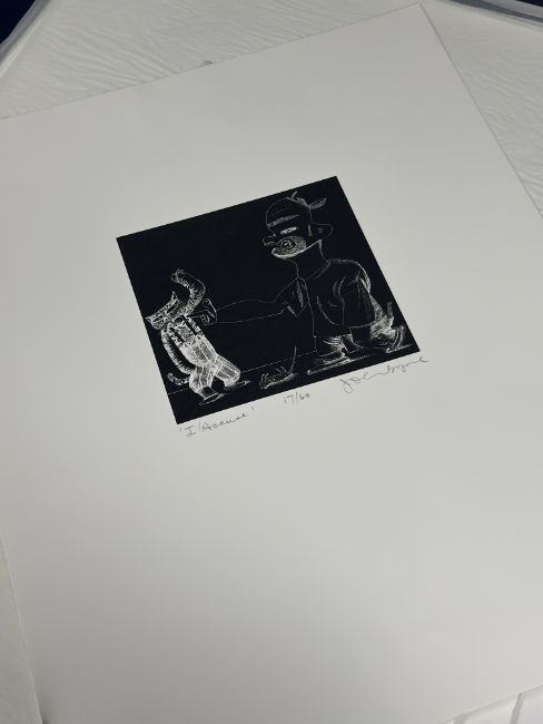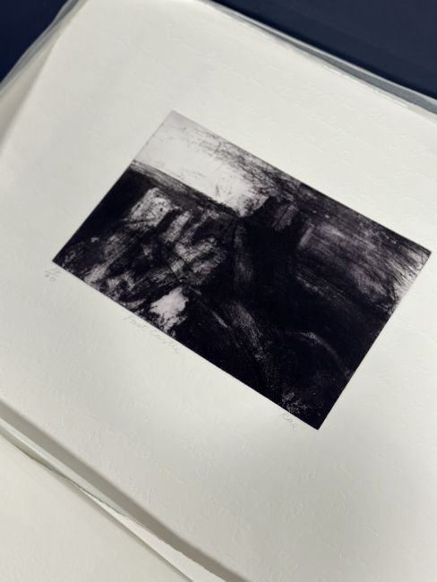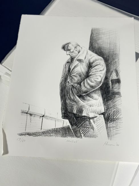 Property from the Estate of the Late Frank Pottinger: The Napier University Portfolio; a folio containing eight limited edition prints by 20th century Scottish artists originally sold on behalf of Napier University, Edinburgh to benefit Higher Education, comprising: Barbara Rae C.B.E., R.A., R.S.A. (Scottish, b. 1943), Fast Castle, etching, signed in pencil, ed. 17/60; Peter Howson O.B.E. (Scottish, b. 1958), Angus, lithograph, signed in pencil, dated (20)01, ed. 17/60; John Byrne R.S.A. (Scottish, b. 1950), J'Accuse, lithograph, signed and titled in pencil, ed. 17/60; Stuart Duffin (Scottish, b. 1959), Street of Prophets, etching, signed and dated (20)01 in pencil, ed. 17/60; Frank Pottinger R.S.A. (Scottish, 1932-2022), Untitled, etching, signed and dated (20)01 in pencil, ed. 17/60; Ian McKenzie Smith C.B.E., P.P.R.S.A., P.P.R.S.W., L.L.D. R.G.I. (Scottish, b. 1935), Untitled, screenprint, monogrammed in pencil, ed. 17/60; John Houston O.B.E., R.S.A., R.S.W., R.G.I., S.S.A. (Scottish, 1930 - 2008), Bass Rock, Evening Storm, lithograph, signed and titled in pencil, ed. 17/60; and Fiona Waston (b. 1952), Natural Progression, etching, signed and titled in pencil, ed. 17/60, each sheet 44cm by 56cm, printed on heavy wove paper by Glasgow Print Studio. (8) Note: the portfolio originally contained ten prints - the two missing artists from this example are William Baillie and Elizabeth Blackadder.