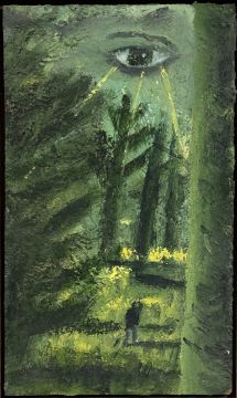 Robert MacLaurin (Scottish, b. 1961), Eye and Figure, signed verso, oil on board, framed. 40cm by 24cm. Note: this lot may be subject to ARR.