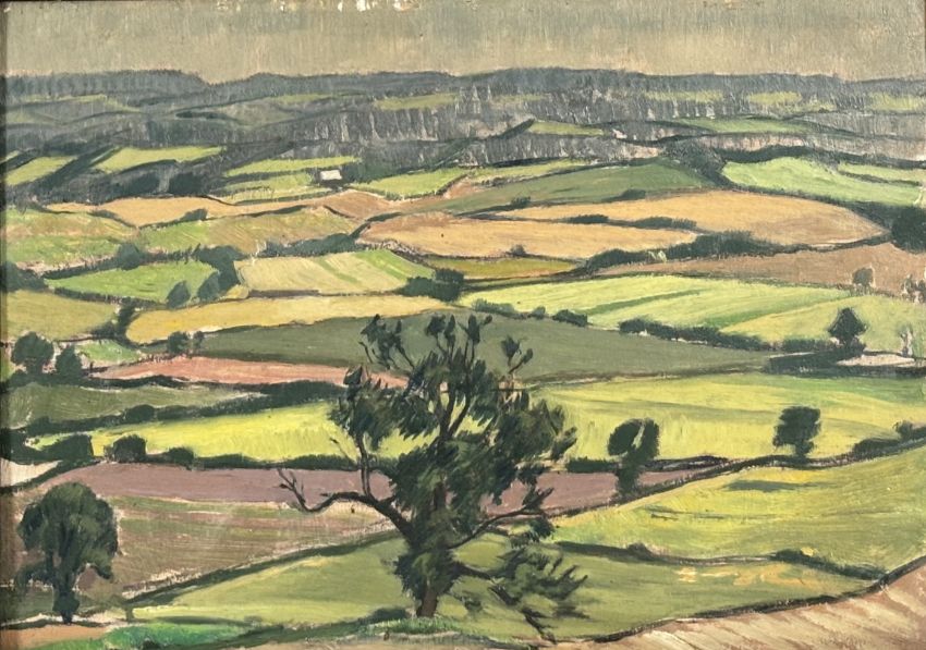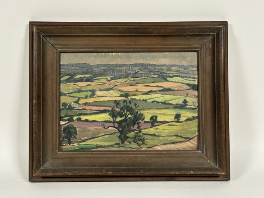 Property of the Late Countess Haig: Dudley Dixon (British, fl. 1930-50), Summer Landscape, signed lower right, oil on panel, framed, artist's label verso. 24.25cm by 34.5cm