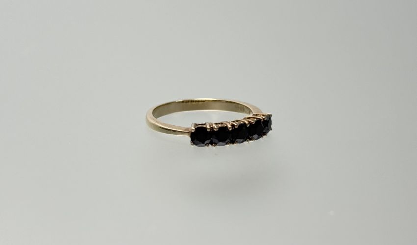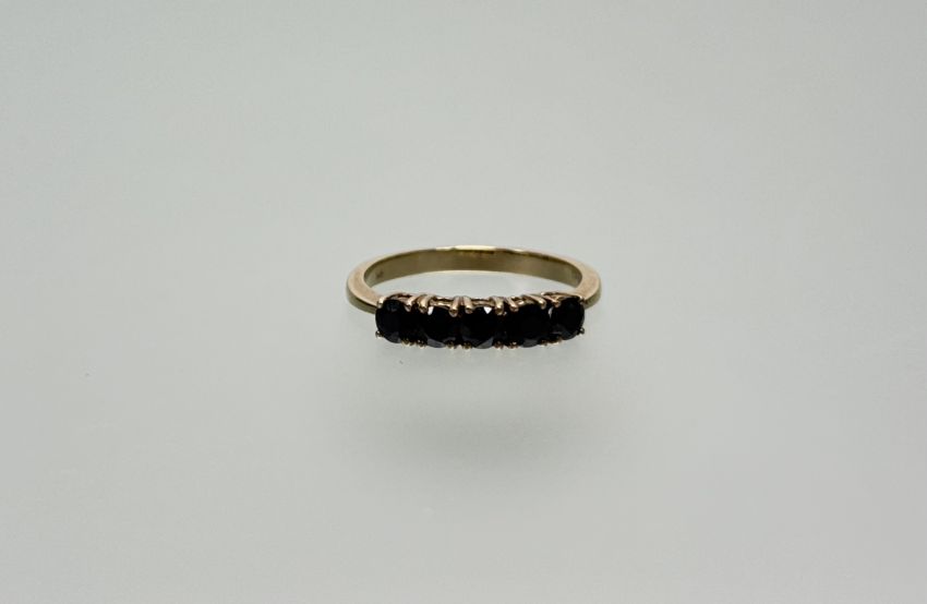 A 9ct gold ring set five circualr dark blue sapphires each stone approximately 0.20ct P 2.32g