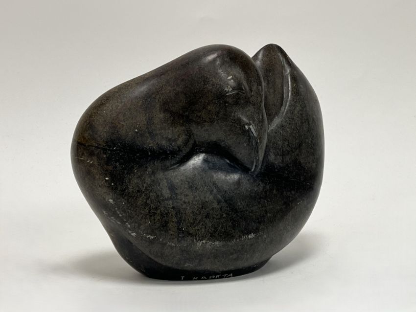 A Biggie Kapeta (Zimbabwe, 1956-1999) soapstone sculpture of a resting bird, marked to base (h. 19cm)